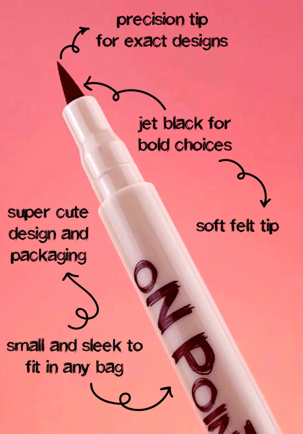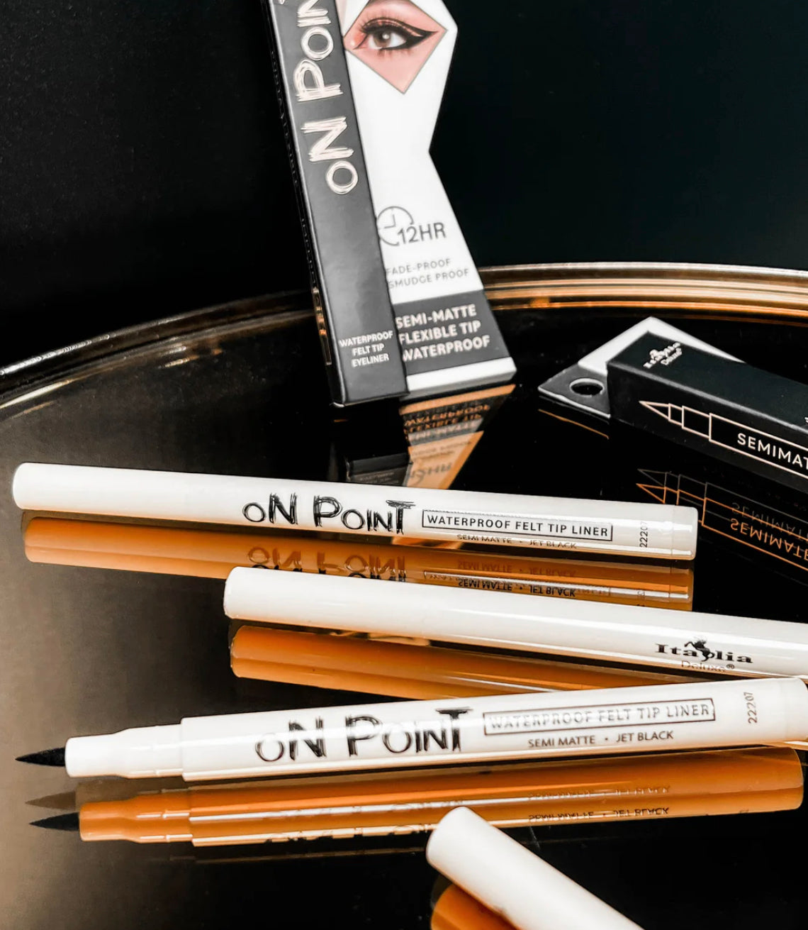 Keep your eyes looking On Point! with Italia Deluxe's new waterproof felt tip eyeliner. In the color Jet-Black, ideal for those bold and precise choices.